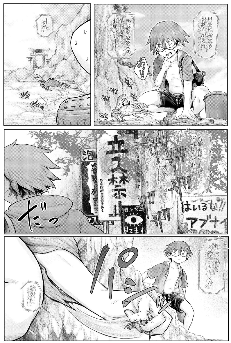 海辺でカニを追いかけていた主人公は、人気のない岬へと迷い込んでしまう。