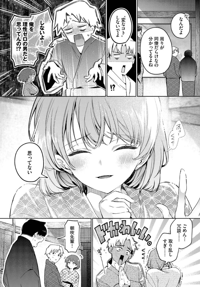 いつもと違う雰囲気の中で見せる朝吹の姿に、主人公・三崎の心はざわつき始める。